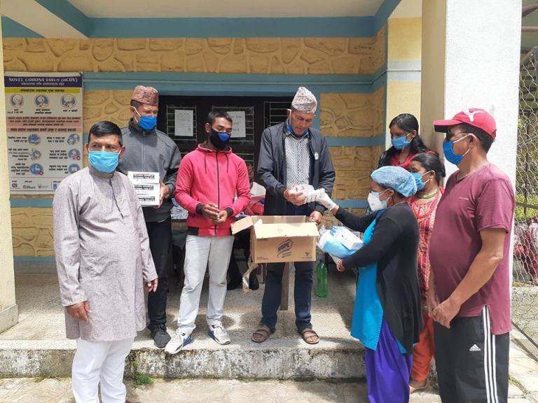आइतबार रामेछापको गोकुलगंगा गाउँपालिका वडा नं ४ स्थित स्वास्थ्य चौकीलाइ सोही ठाउँका स्थानिय समेत रहेका बिकले ब्यक्तिगत खर्चमा नर्मल २३० थान मास्क, थर्मल गन १ थान, पञ्जा १३ थान, सिटामोल २०० ट्याब्लेट, भिटामिन २०० ट्वाब्लेट, स्यानिटाइजर ५० एमेलको एक दर्जन आदि बेताली स्वाथ्या चौकीलाइ प्रदान गरेका हुन् ।
