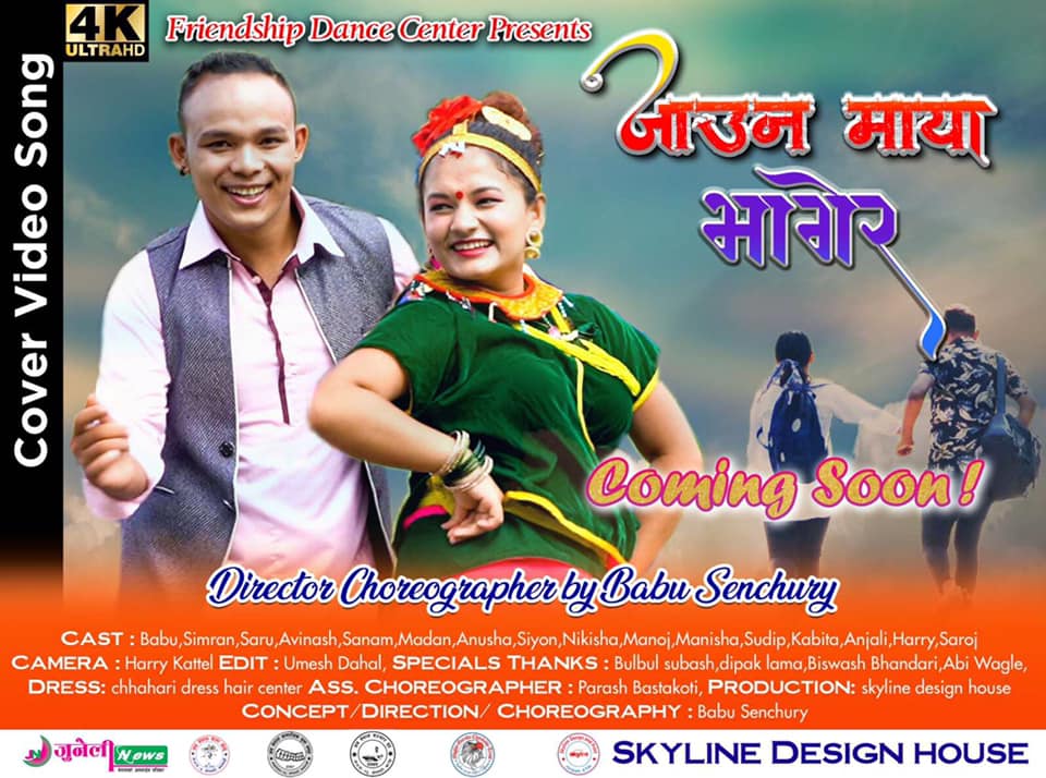 फ्रेण्डसिप डान्स सेन्टरका संचालक तथा नृत्य निर्देशक बाबु सेन्चुरीको निर्देशन तथा कोरियोग्राफीमा “जाउन माया भागेर” गीतको कभर भिडियो निर्माण भएको छ | ह्यारी कट्टेलको छायांकन र उमेश दाहालले सम्पादन गरेको सो भिडियोमा बाबु सेन्चुरी,सिम्रन खडका, मदन लामा, सरु श्रेस्ठ, अभिनाश घलान, अनुशा पौडेल, सियोन तामाङ, सनम बिष्ट, मनोज मगर, निकिशा तामाङ, सुदिप तामाङ, मनिषा लामा, कबिता गिरी लगायतका कलाकारहरु रहेका छन् | भिडियो तल छ, हेर्नु होला ……………….
