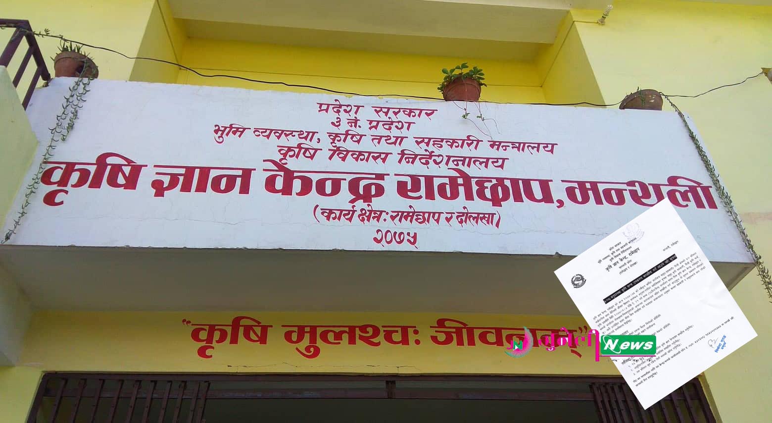रामेछाप । कृषी ज्ञान केन्द्र रामेछापले ५० प्रतिशत अनुदानमा कृषि यन्त्र उपकरण सम्झौता गर्न आउन आह्वन गरेको छ ।