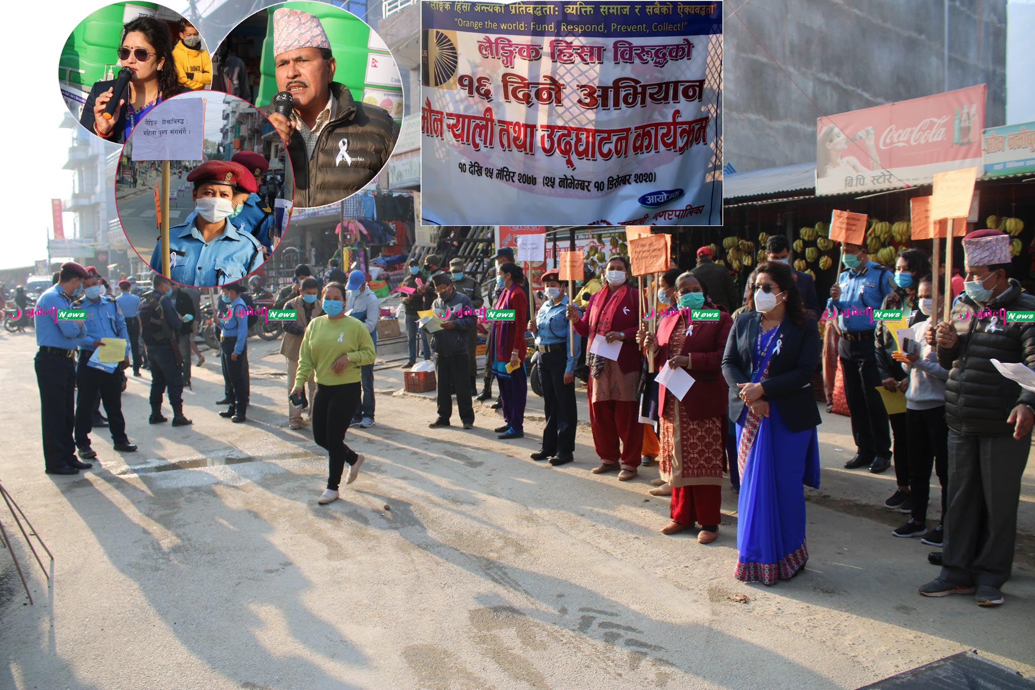बुधबार नोभेम्बर २५ देखि डिसेम्बर १० सम्मा विश्वब्यापी रुपमा लैङि्गक हिंसा विरुद्धको अभियान नेपाल पनि मनाउन सुरु भएसंगै नगरले पनि अभियानको सुरु गरेको हो ।