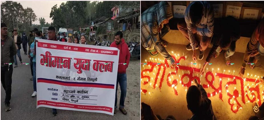 शुक्रबार भिमा युवा कल्बको आयोजनामा दोषीलाई कार्वाहीको मागको गर्दै सिन्धुली कमलामाई वडा नं ९ भिमानका स्थानीय युवाहरुले विरोध र्याली पर्दशन गरिका हुन् ।