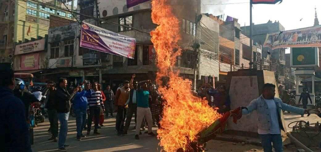 बाँके । प्रधानमन्त्री केपी शर्मा ओलीले संसद बिघटन गरि असंवैधानिक कदम लाचेको भन्दै बाँके जिल्लामा जनता समाजवादी पार्टी (जसपा) ले पुत्लादहान गरेको छ ।