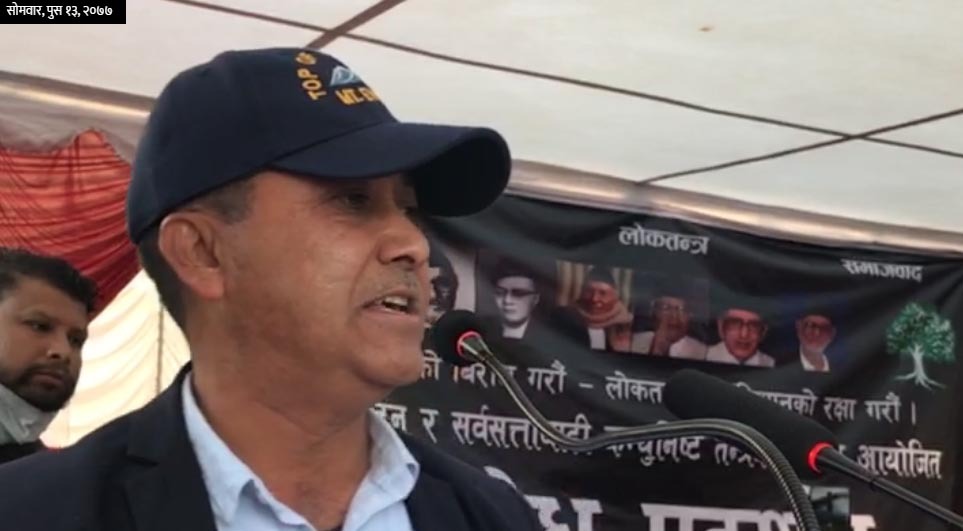 सोमबार उनले कोटेश्वबाट संसद बिघटन बिरुद्ध भएको प्रर्दशनलाई सम्बोधन गर्दै उनले यस्तो बताए । उनले भने संसद बिघटन हुनुमा केपी शर्मा ओलीमात्रै जिम्मेवार छैनन् , त्यसमा कम्रेड प्रचण्ड, माधव नेपाल र चौथौं राष्ट्रपति भण्डारी दोषी रहेका छन् । यी चारै जनाको मिलोमतोमा देशलाई बर्वादितिर गएको बताए । उनले केपी ओलीको सरकार बनेदेखि बिपक्षी पार्टी भएर सहयोग गरेको भन्दै कसले असहयोग गरेको भन्दै प्रश्न गरे ।
