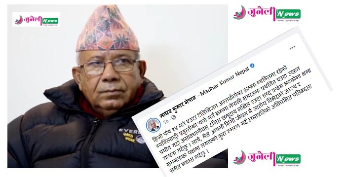 काठमाडौं । नेपाल कम्युनिष्ट पार्टी (नेकपा) प्रचण्ड-नेपाल समूहका नेता माधव कुमार नेपालले दलित समूदायसंग माफि मागेेका छन् ।