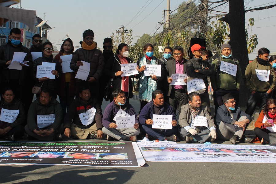 काठमाडौं । रुकुम जाजरकोट हत्याकाण्ड– नबराज सहित ६ जना युवाको हत्याको हत्यारालाई सख्त कारवाहीको माग गर्दै विभिन्न राजनीतिक पार्टीका भातृसंगठनहरु संयुक्त राजनीतिक दलित संघर्ष समिती,दलित एकता संजाल नेपाल, तथा दलित नागरिक समाजको आयोजनामा काठमाडौको माइतीघर मन्डलामा धर्ना तथा खबरदारी बिरोधि कार्यक्रम भएको छ ।
