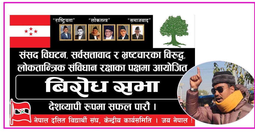 काठमाडौं । नेपाली कांग्रेसको भातृ संस्था नेपाल दलित विद्यार्थी संघसहित नेपाली कांग्रेसले भोली देशब्यापी प्रर्दशन गर्दै छ । संसद् बिघटनको बिरोधमा भोली (शनिबार) कांग्रेसले देशब्यापी दोस्रो चरणको प्रर्दशन गर्न लागेको हो ।