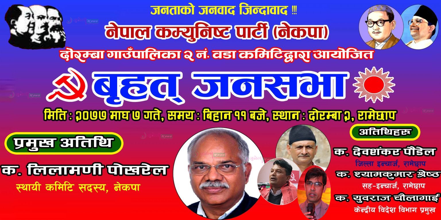 रामेछाप । नेपाल कम्युनिष्ट पार्टी (नेकपा) प्रचण्ड -माधब समूहको दोरम्बामा बृहत जनसभा हुने भएको छ ।