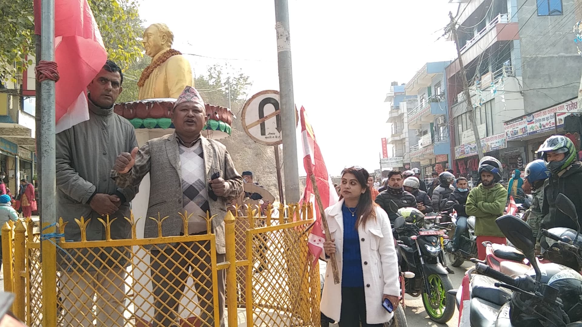 बिहिबार बिहान ११ बजे मन्थलीको थापा चोकदेखि आकाशे पुलसम्म संसद बिघटनको बिरोधमा बृहत मोटरसाईकल र्याली आयोजना गरेको हो ।