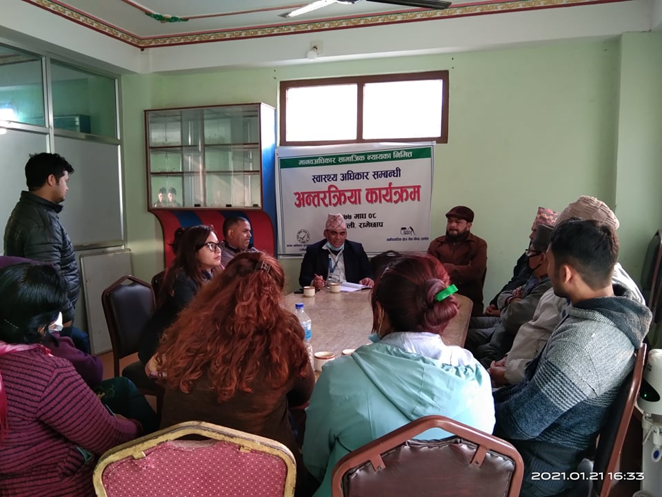 मानवअधिकार संजाल रामेछापको आयोजनामा भएको अन्तरक्रिया कार्याक्रमलाई बिहिबार मन्थलीमा सम्बोधन गर्दै उनले यस्तो बताएका हुन् । उनले नगरपालिका भित्रहाल सम्म कोरोनाबाट मानविय क्षति नभएको भन्दै संक्रमित भएकाहरुलाई नगरपालिकाल परीक्ष, उपचार, आइसोलेशनको लगाएत सबै निशुल्क गरेको बताए । उनले बिहिबार मात्रै भारतले पठाएको कोरोना खोप नेपाल आएको सम्बन्धमा सरकारले स्वास्थ्य शाखालाई खोप लगाउनु पर्ने आवश्यक ब्यक्तिहरुको नामावली पठाउन भनेकाले बिहिबार बृद्धबृद्धा, स्वाथ्यकर्मी, कोरोनाको ब्यवस्थापनमा फन्ट्लाईनमा खटिएकाहरुको नामावली पठाएको उनले बताए ।