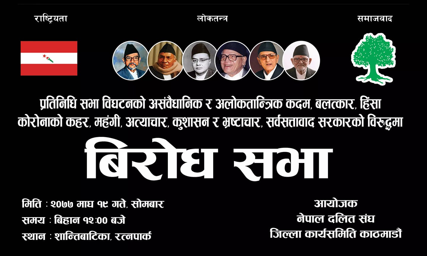 • नेपाल दलित संघले सोमबार राजधानीमा प्रर्दशन गर्ने
