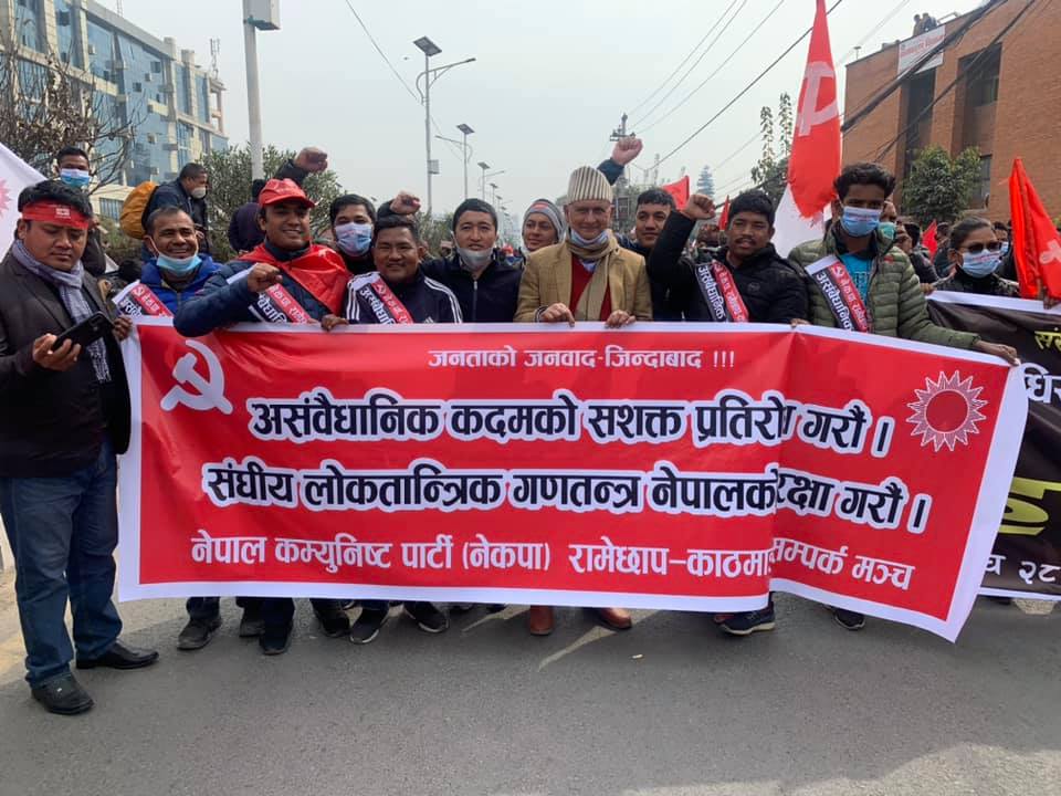 प्रतिनिधि सभा बिघटन भएको भन्दै उनीहरुले प्रर्दशन गरेका हुन् ।