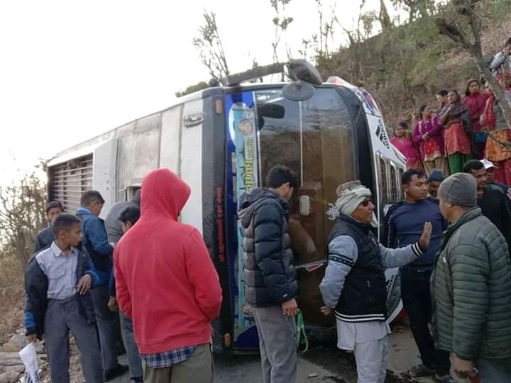 सालुबाट राष्ट्रपति रनिङ्शिल्ड प्रतियोगितका खेलाडी बाेकेकाेे बस मन्थलीमा दुर्घटना