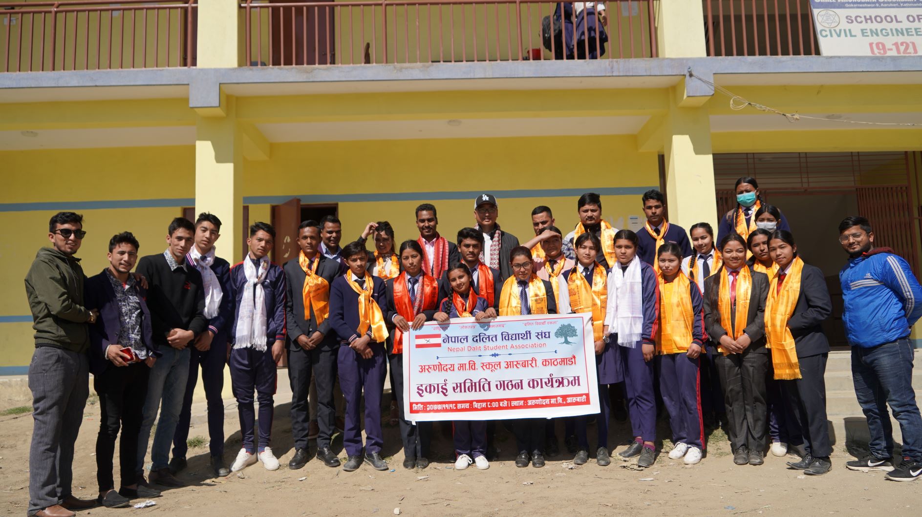 काठमाडौँ | काठमाडौ जिल्ला गोकर्णेश्वर नगरपालिका वडा नं ९ आरुबारी स्थित अरुणोदय माध्यमिक विद्यालयमा नेपाल दलित विद्यार्थी संघ ईकाई कमिटी गठन कार्यक्रम सम्पन्न भएको छ | नेपाल दलित बिधार्थी संघका केन्द्रीय अध्यक्ष राजु सुनार ज्यूको प्रमुख आतिथ्यतामा इकाई कार्यसमिति गठन भएको हो |