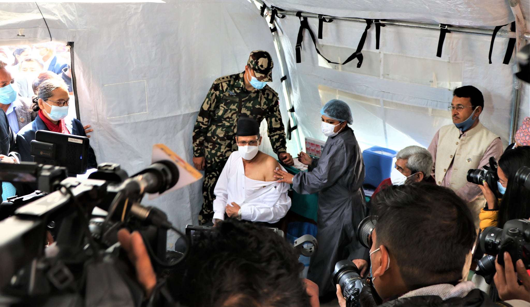 काठमाडौं । प्रतिनिधि सभामुख अग्निप्रसाद सापकोटाले कोरोना बिरुद्धको खोप लगाएका छन् । आज विहान सिभिल अस्पताल नयाँ बानेश्वरमा कोरोना विरुद्धको खोप लगाएका हुन् ।