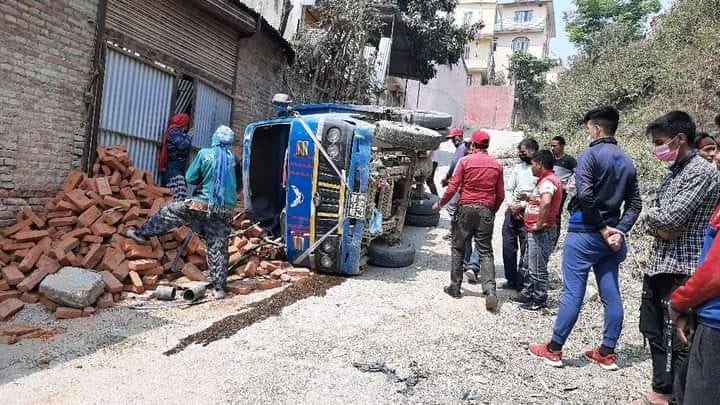 चोकदेखि १०० मीटर अगाडि सुन्दरीजल जाने बाटोमा ब्रेक फेल भएर बा २ ख ८५७७ नम्बरको निसान गाडी पल्टिएको हो । दुर्घटनामा परि सोही गाडीका चालक सामान्य घाइते भएका छन् ।