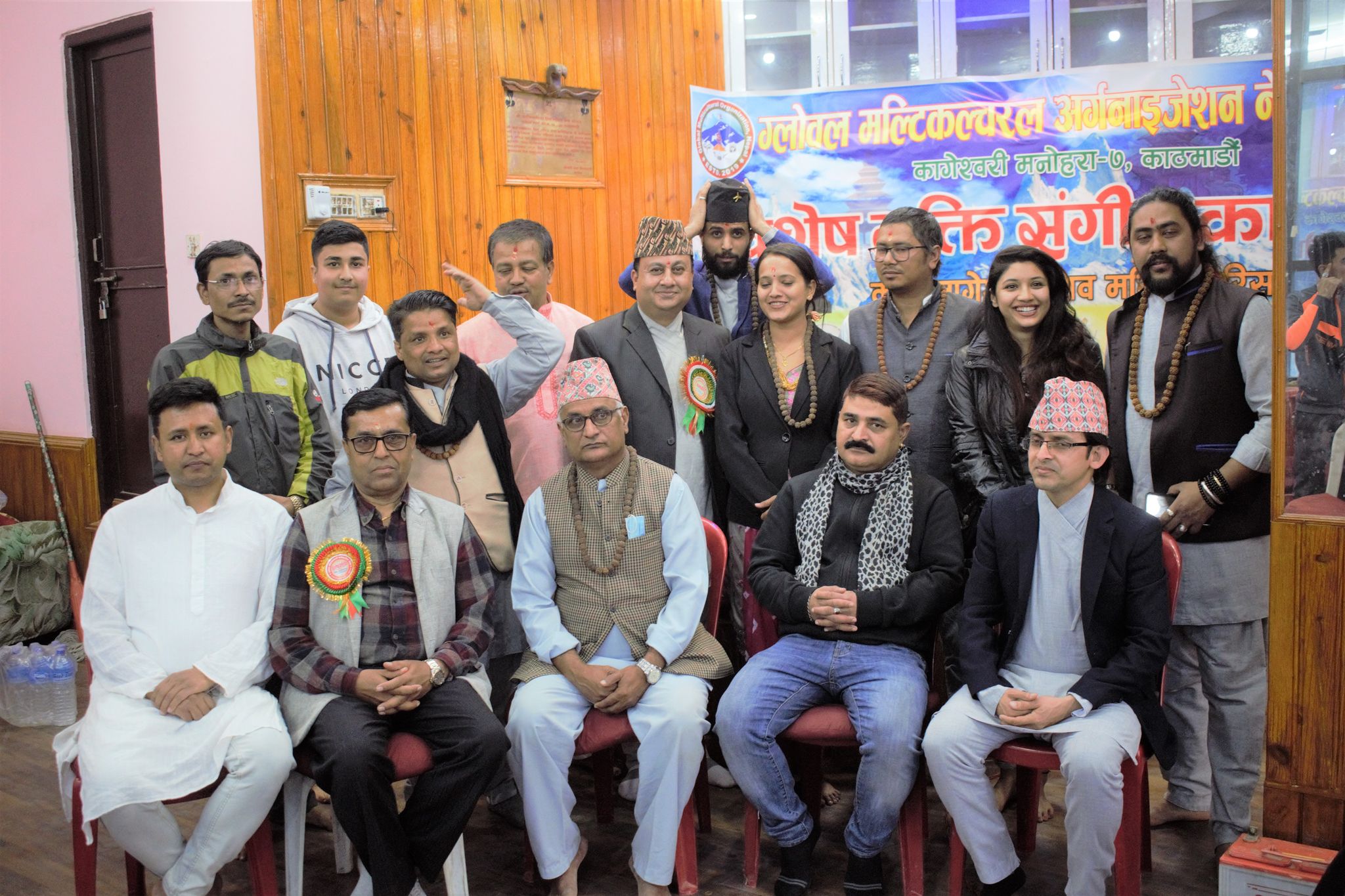 काठमाडौँ । २०७७ साल चैत्र ८ गते शनिवार ग्लोवल मल्टिकल्चर अर्गानाईजेशन, नेपालद्वारा नव निर्वाचित पदाधिकारीहरुको भव्य अभिवादन तथा विशेष सांगितिक कार्यक्रमको आयोजना गरेको छ ।