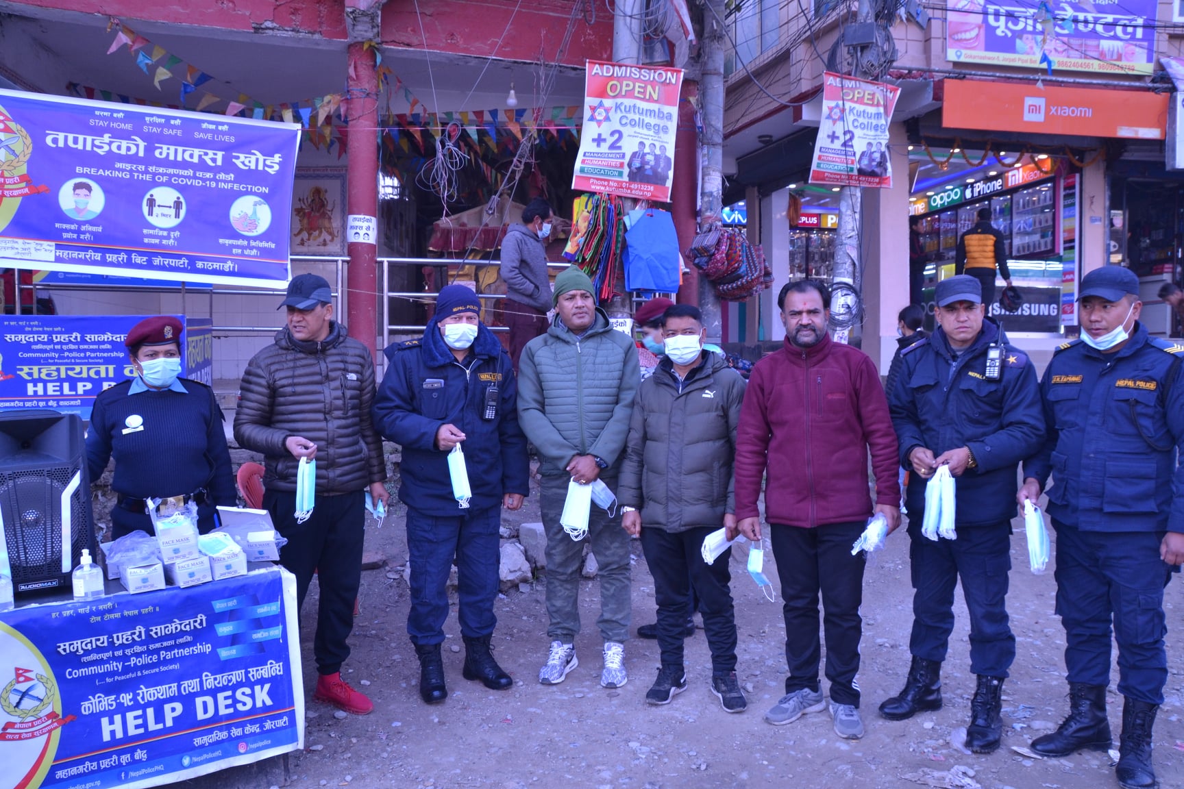 जोरपाटी प्रहरी बिटको आयोजना तथा गोकर्नेश्वोर नगरपालिका वडा नं ५ को सहयोगमा मास्क वितरण कार्यक्रम भएको छ | कोरोना भाइरसको तेश्रो लहर बढ्दै गएको कारण यस बाट सुरक्षित रहने सन्देश सहित मास्क वितरण कार्भयक्एरम भएको हो |