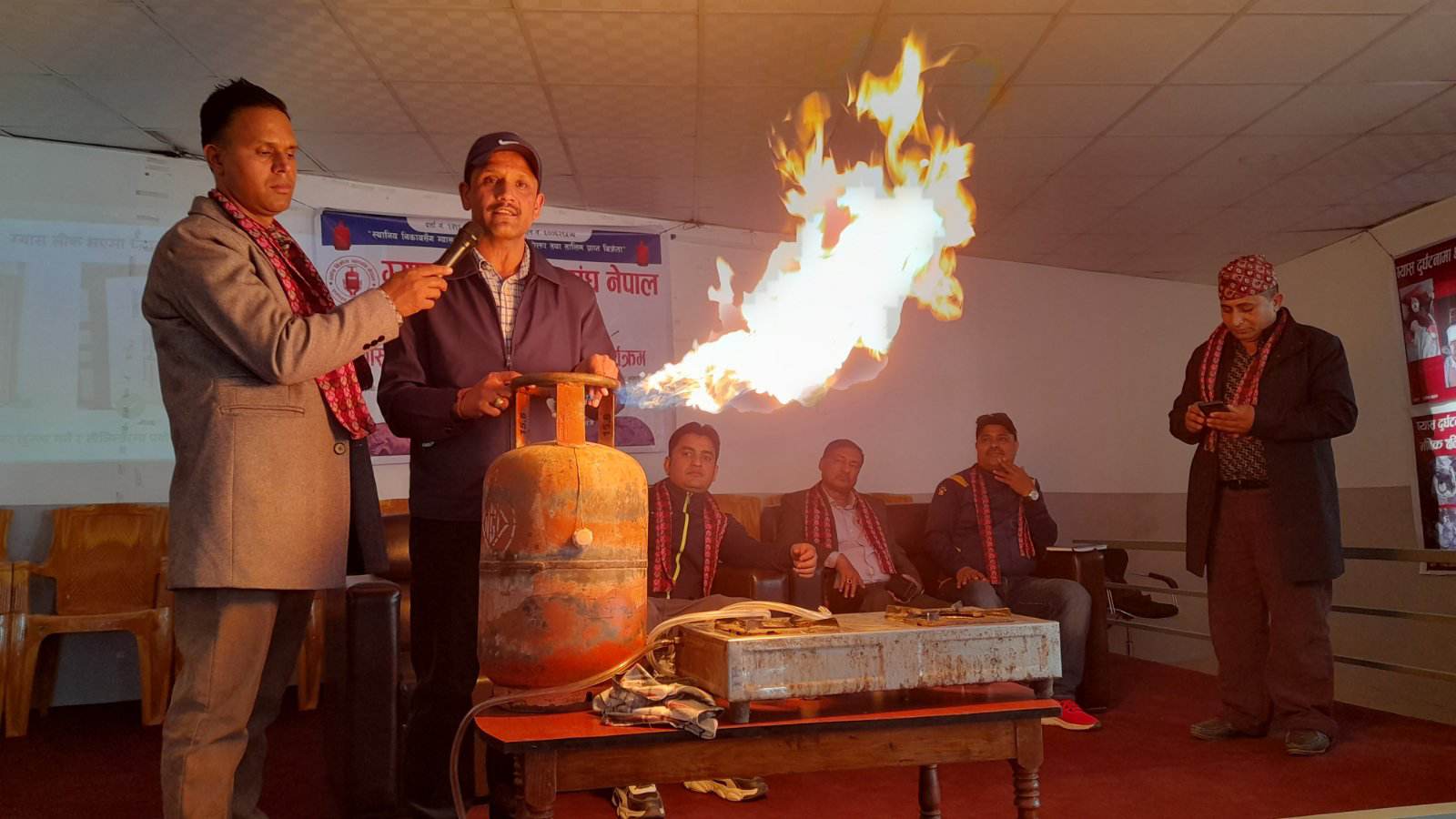 ग्यास अाफैमा पड्किदैन ग्यास सँग सम्बन्धित रेगुलेटर, पाइप र चुल्हो कारणले पनि ग्यास दुर्घटना भइरहेको र उपभोक्ता जनचेतनामूलक कार्यक्रम ग्यास बिक्रेता महासंघ नेपाल र नेपाल अायल निगम सँग सहकार्य गरेर देशैभरि लिएर जाने जानकारी जानकारी गराउनु भयो ।।।