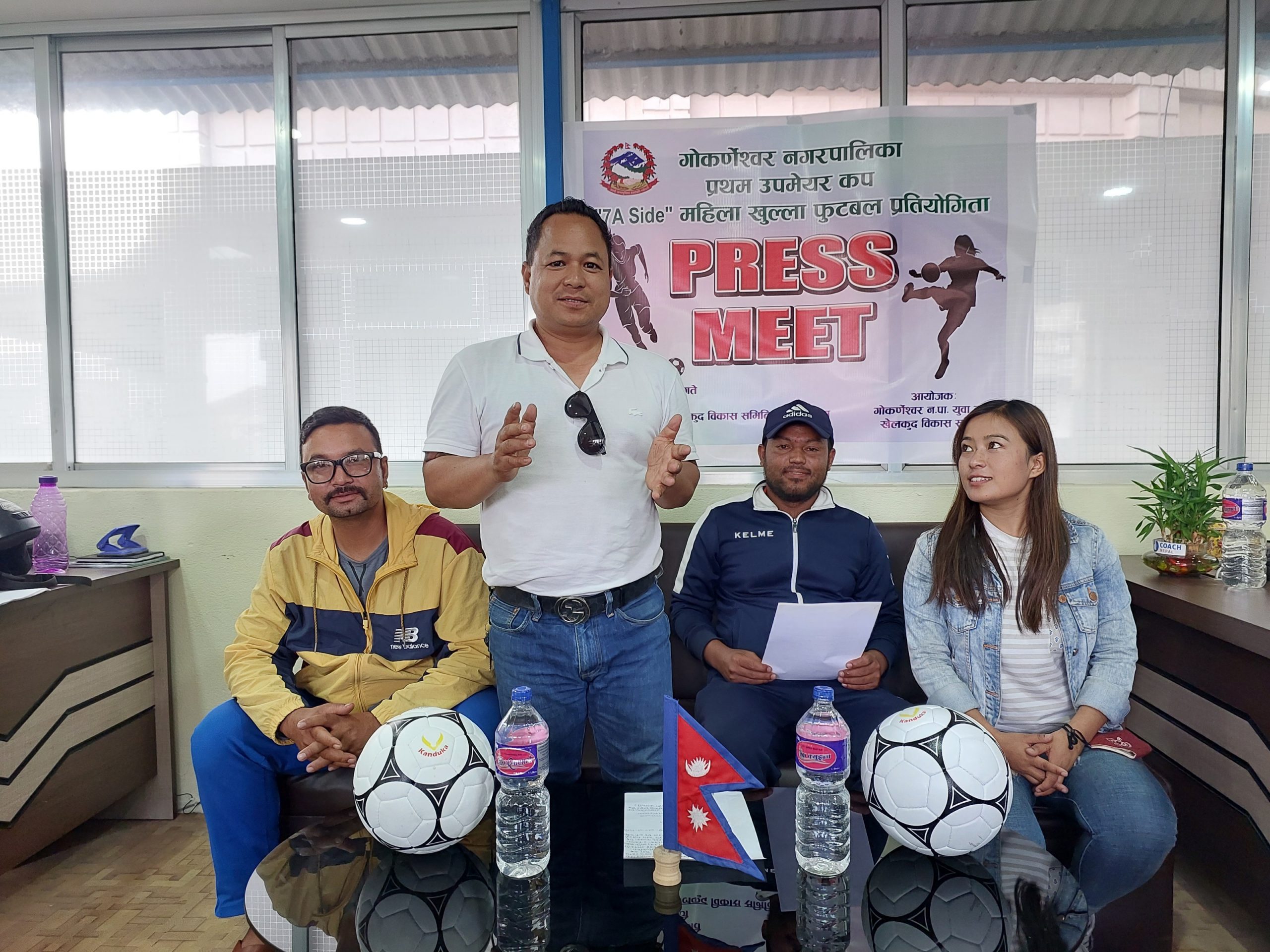 जुनेली न्यूज काठमाण्डौ,गोकर्णेश्वर नगरपालिकामा प्रथम उप मेयर कप 7A Side खुल्ला महिला फुटबल प्रतियोगिता यहि आउँदो असार ६ गते देखि हुने भएको छ। गोकर्णेश्वर नगरपालिका युवा तथा खेलकुद विकास समितिको आयोजनामा हुने उक्त प्रतियोगितामा भाग लिनको लागि,गाउँ, टोल, वडा, गाउँपालिका, नगरपालिका, क्लबहरू, जिल्ला सँग समन्वय गरि यहि आउँदो असार ४ गते सम्म आफ्नो टिम दर्ता गराउन सकिने आयोजकले एक पत्रकार सम्मेलन गरि जनाएको छ।