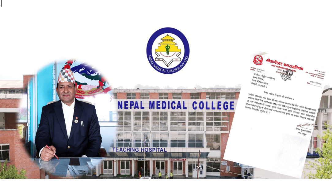 नेपाल मेडिकल कलेजमा बिरामी र सेवाग्राहीलाइ लिई रहेको पार्किंग शुल्क नलिन गोकर्णेश्वर नगरपालिकाका मेयर दिपक रिसालले पत्र पठाएका छन् |