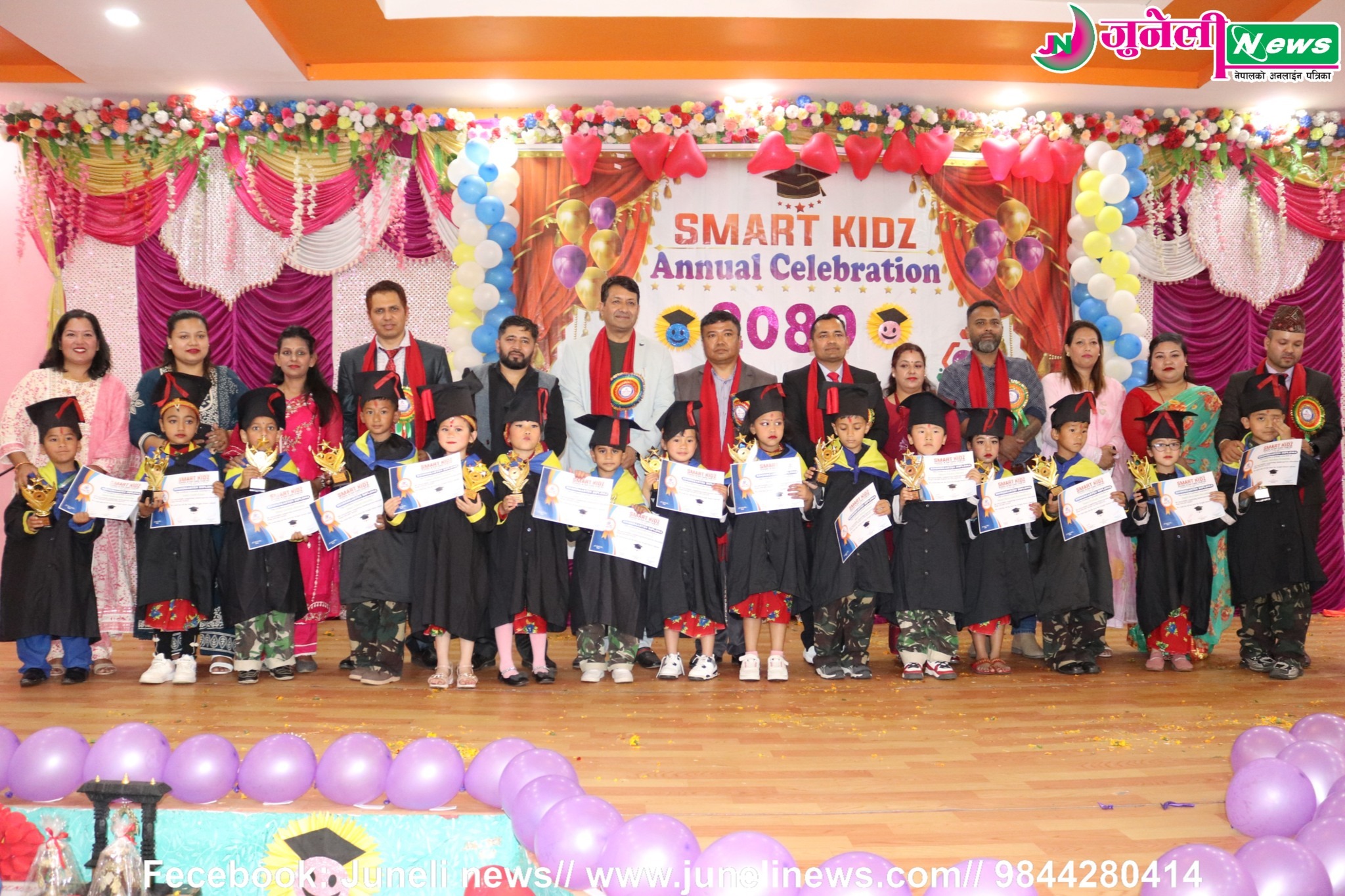 स्मार्ट किड्स स्कुलले बालबालिकाहरुलाइ उत्कृष्ट शिक्षा र संस्कार दिई रहेको र भबिष्यमा अझै राम्रो प्रगति गरोस भन्दै प्रमुख अतिथि रिसालले शुभकामना दिएका थिए |