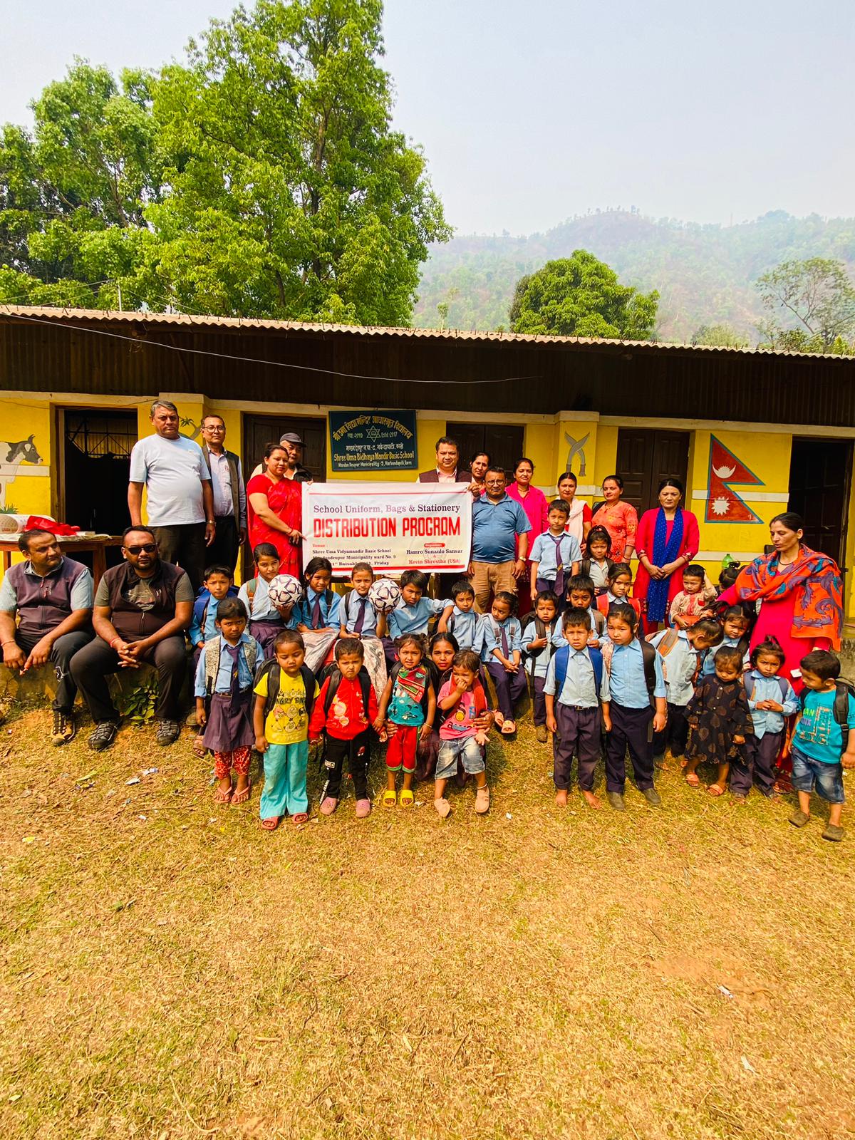काभ्रे जिल्लाको मण्डनदेउपुर नगरपालिका वडा नं ९ को श्री उमा विद्या मन्दिर आधारभूत विद्यालयमा स्कूल युनिफर्म, झोला र शैक्षिक सामग्री प्रदान गरिएको हो।