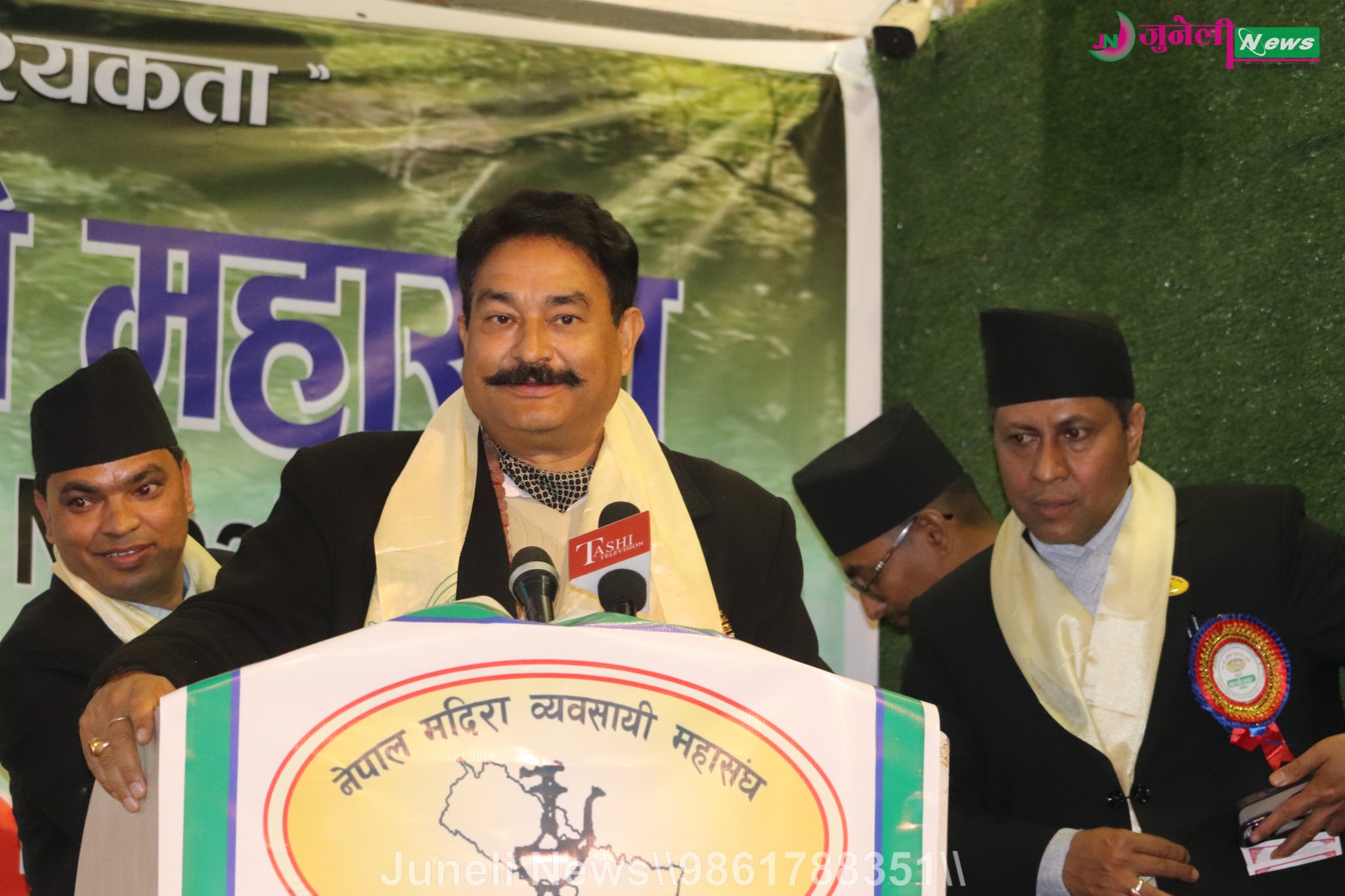 कार्यक्रममा स्वागत मन्तव्य उपाध्यक्ष खड्ग बहादुर बुढाथोकीले राख्नु भएको थियो । महासंघका पूर्व अध्यक्षबाट राम श्रेष्ठ, नेपाल चेम्बर अफ कमर्सका उपाध्यक्ष तथा महासंघका पूर्व अध्यक्ष सन्तोष पाण्डे, जिल्ला संघको तर्फबाट मदिरा व्यवसायी संघ काठमाडौंका अध्यक्ष रुप तामाङ, प्रदेश महासंघको तर्फबाट कोशी प्रदेशका अध्यक्ष नविन तामाङ, सल्लाहकार मण्डलका तर्फबाट विष्णुकुमार श्रेष्ठ, गोर्खा ब्रुअरी प्रा.ली.का सेल्स डाइरेक्टर काजिमान सुब्बाले शुभकामना मन्तव्य राख्नु भएको थियो ।