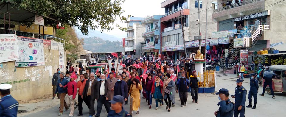 आइतबार आपरानह् ४ : ३० बजे सदरमुकाम समेत रहेको मन्थलीमा सोमबार देश ब्यापी रुपमा हुन लागेको सरकार विरोधी प्रर्दशनको पुर्वसन्ध्यामा वृहत सिटी जुलुस निकालेको हो ।