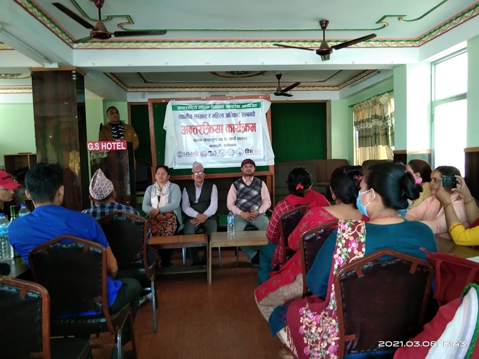 नगरप्रमु रमेशकुमार बस्नेतले स्थानीय सरकारले महिलाहरुको विकाससंग सम्बन्धित रहेर गरेका कार्यहरु र भोलीका योजनाहरुका बारेमा जानकारी गराएका थिए ।